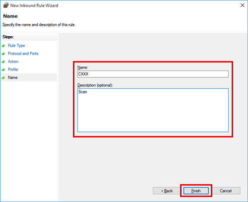 Geben Sie den Namen und die Beschreibung der Firewall ein und klicken Sie auf [Fertig stellen].