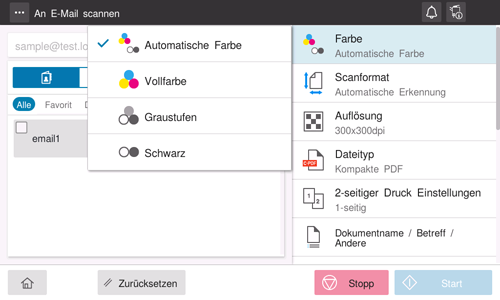 Wenn Sie den Farbmodus angeben wollen, wählen Sie [Farbe] aus und geben Sie dann den gewünschten Farbmodus an.