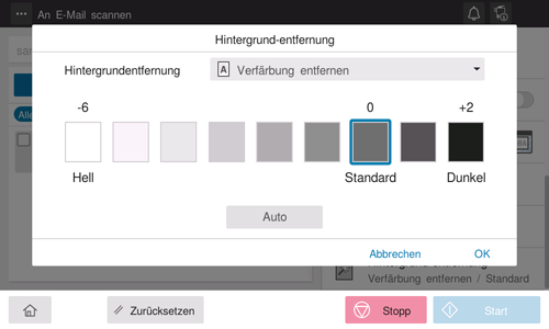 A. Sie können die Dichte der Hintergrundfarbe anpassen, um einen Scan ohne durchscheinenden Hintergrund zu erhalten.