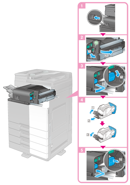 Gehen Sie beim Beheben eines Heftklammerstaus vorsichtig vor, um Verletzungen zu vermeiden.