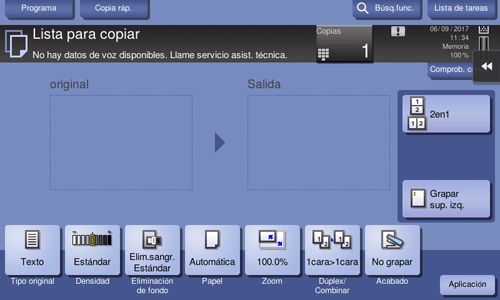 Es posible tocar [Copia rápida] en la pantalla principal en el modo copia de estilo clásico para visualizar la configuración de copia básica en una sola pantalla. Esta función resulta útil si desea configurar los ajustes básicos en forma colectiva.