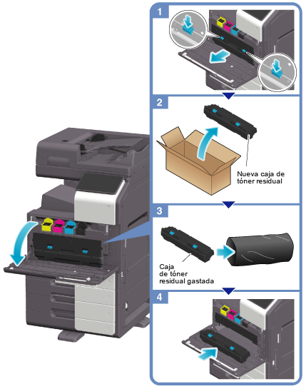 El servicio de asistencia técnica recogerá el depósito de tóner residual usado. Debe colocarse en una bolsa de plástico y guardarse en una caja vacía.