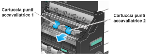 Rimuovere eventuali custodie graffette vuote dalla Cartuccia pinzatrice.
