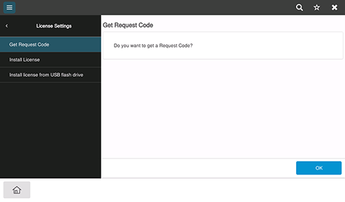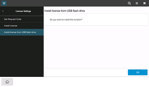 L'enregistrement d'une licence permet de stocker un fichier nécessaire à l'activation d'une fonction dans une mémoire USB. Activez la fonction en connectant la mémoire USB à cette machine et en important le fichier sur la machine.