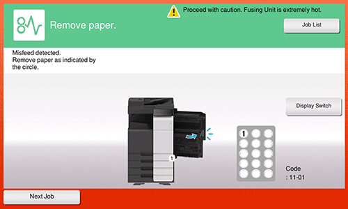 Un bourrage papier peut se produire à un endroit différent de celui affiché sur l'écran de cette machine. Vérifiez aussi les endroits non affichés sur l'écran.