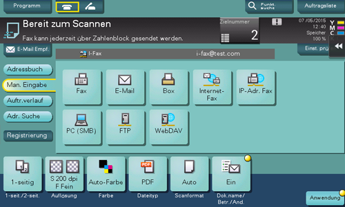[Adresstyp] | Der unter [Man. Eingabe] ausgewählte Zieltyp wird angezeigt. |