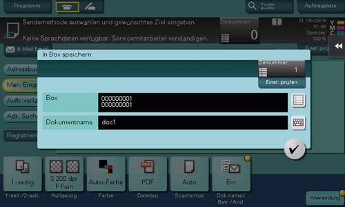 [Dokumentname] | Zeigt den Namen einer Datei an, die in einer Box gespeichert werden soll. Falls nötig, benennen Sie die Datei um (max. 30 Zeichen). |
