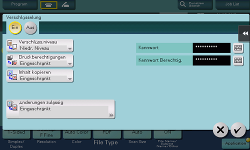 Wenn [PDF] oder [KompaktPDF] als Dateiformat ausgewählt ist, können Sie PDF-Dateien verschlüsseln.