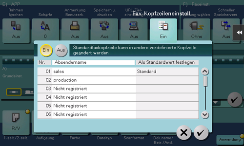 Wenn Sie einen vom Standardnamen abweichenden Absendernamen verwenden möchten, wählen Sie den gewünschten neuen Absendernamen und tippen dann auf [OK].