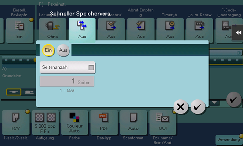 [Ein]/[Aus] | Wählen Sie [Ein], um den schnellen Speicherversand zu aktivieren. |