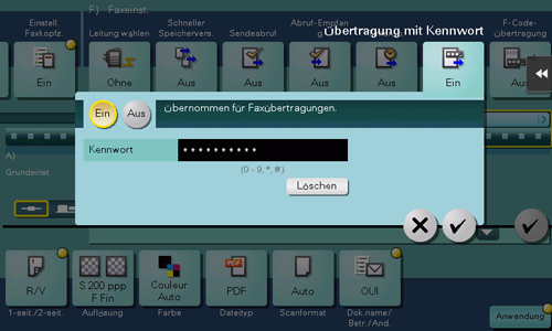 [Ein]/[Aus] | Wählen Sie [Ein], um die Übertragung mit Kennwort zu aktivieren. |