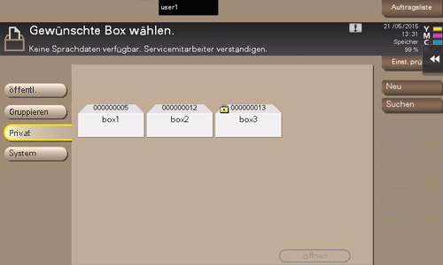 Wählen Sie für den Zugriff auf eine Datei in dieser Box die gewünschte Box aus und tippen Sie dann auf [Öffnen].