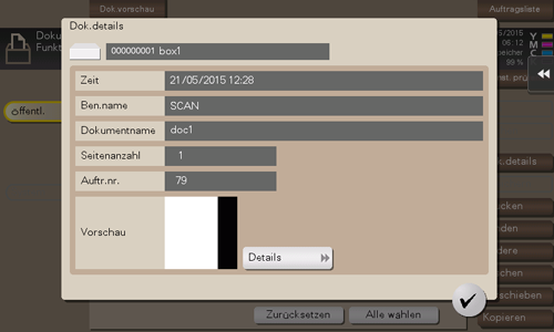 Sie können den Speicherzeitpunkt, die Seitenzahl und ein Vorschaubild der ausgewählten Datei abrufen.