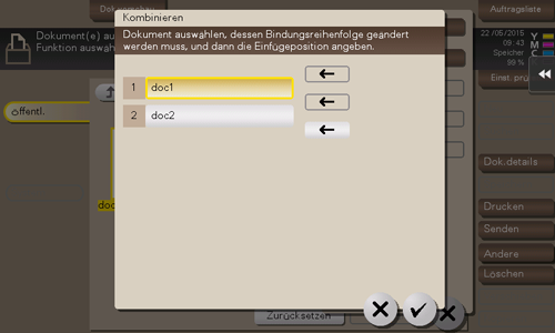 Legen Sie die Druckreihenfolge (Kombination) fest und tippen Sie auf [OK]. Der Optionseinstellungsbildschirm für den Druck wird angezeigt.