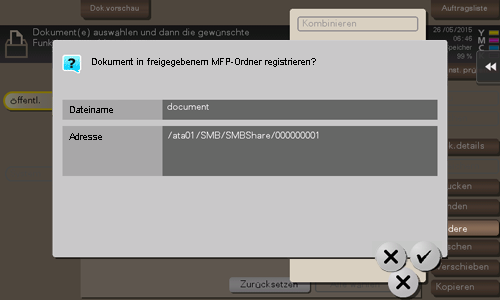 Verwenden Sie diese Funktion, um ein in einer Box gespeichertes Dokument mit der Scanfunktion oder der Boxfunktion in ein allgemeines Format umzuwandeln oder um eine Datei, die aus einem freigegebenen Ordner gelöscht wurde, über einen Computer erneut im freigegebenen Ordner zu registrieren.