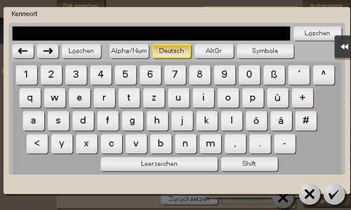 Dieser Bildschirm wird angezeigt, wenn [Administratoreinstellung] - [Sicherheit] - [Sicherh.details] - [Unzulässige Funktionen bei fehlgeschl. Authentif.] auf [Modus 2] gesetzt ist.