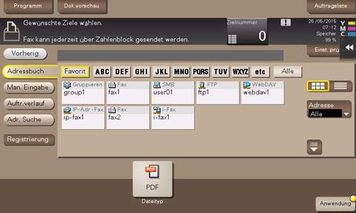 Legen Sie das Ziel und andere Einstellungen für den Versand einer Datei aus der Benutzerbox fest.