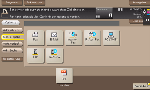 Geben Sie die Empfängerinformationen gemäß dem von Ihnen verwendeten Übertragungssystem ein.