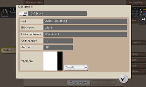 Sie können den Speicherzeitpunkt, die Seitenzahl und ein Vorschaubild der ausgewählten Datei abrufen.