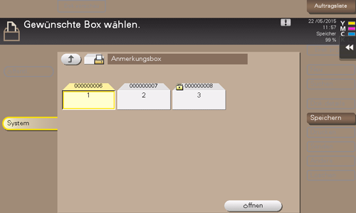 Wählen Sie für den Zugriff auf eine Datei in dieser Box die gewünschte Box aus und tippen Sie dann auf [Öffnen].