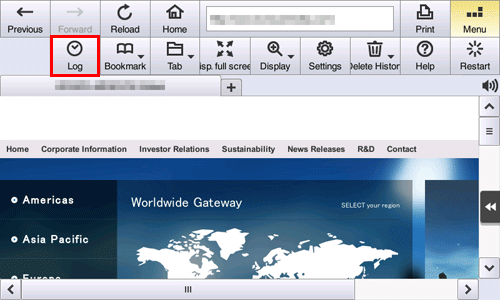 Tapping [Menu] - [Log] on the toolbar displays a list of pages displayed up till the current time.