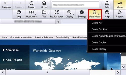 Select [Menu] - [Del. History] on the toolbar to delete cookies, cache data, authentication information, and other information.