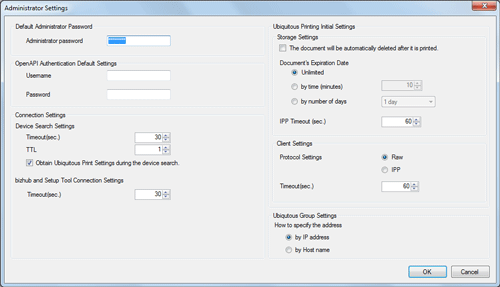 [Ubiquitous Group Settings] | Specify the default method to specify the address of each of MFPs that make up a universal print group. |