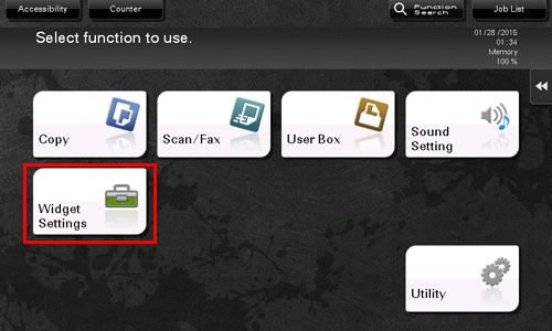 Place [Widget Settings] on the main menu. For details on the setting procedure, refer to Here.
