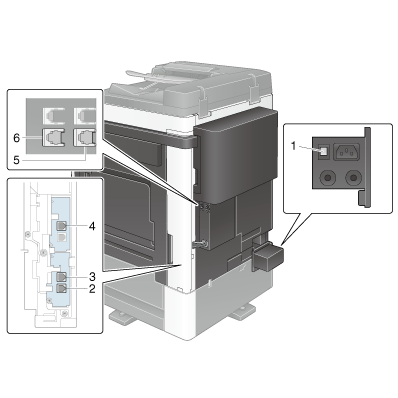 3 | Telephone Jack 1 (LINE PORT1) | Used to connect a general telephone subscriber line. Connect the cord to this connector when using only one telephone line. |