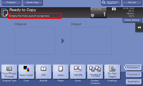 When the punch scrap box is full, a message appears to prompt you to dispose of the punch scraps (at replacement by user).