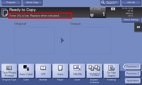 When it is almost time to replace a Toner Cartridge, an advanced warning message appears. Prepare a replacement Toner Cartridge based on the maintenance contract.