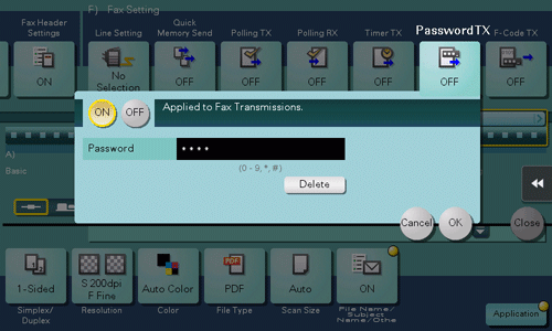 [ON]/[OFF] | Select [ON] to specify Password TX. |