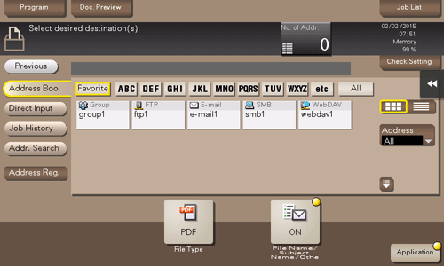 Select a destination from the Address Book. You can broadcast files by selecting multiple destinations.