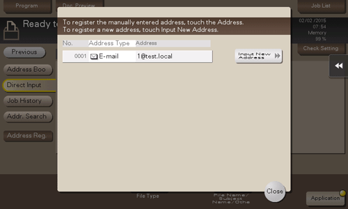 You can register the destination that you have entered directly into the address book. For details on how to register, refer to Here.