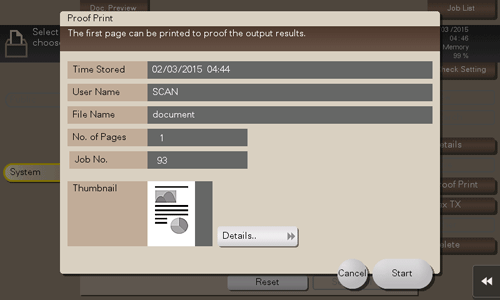 If you tap [Details..] or a thumbnail image, you can rotate or delete a page while checking a file preview image.
