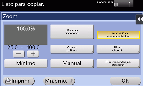 [Tamaño completo] | Toque este botón para copiar una imagen original con el mismo tamaño que para el original (x1.0). |