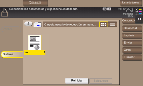 Seleccione un fax para imprimirlo y, a continuación, toque [Imprimir].