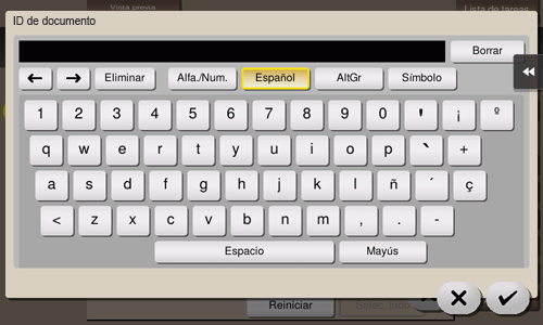 Introduzca el [ID de documento] para el documento de impresión segura y, a continuación, toque [Aceptar].