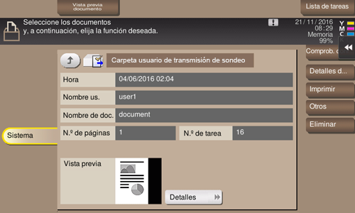 Puede tocar [Detalles] o una imagen en miniatura para obtener una vista previa de la imagen del archivo.