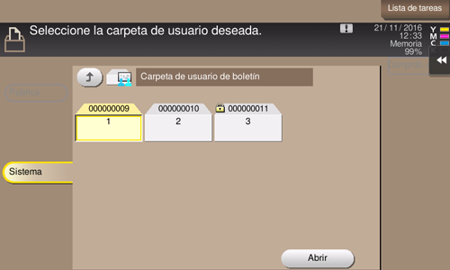 Seleccione la carpeta de usuario deseada y, a continuación, toque [Abrir].