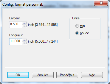 Lorsque vous utilisez le pilote PCL, vous pouvez enregistrer un format personnalisé dans l'onglet [Paramètres]. Pour des détails sur l'onglet [Paramètres], voir [Opérations disponibles dans l'onglet Paramètres] .