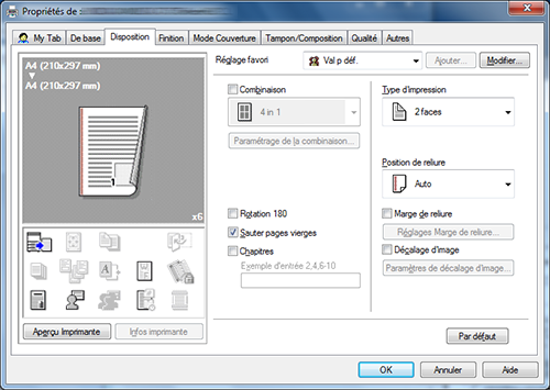 [Sauter pages vierges] est uniquement disponible en cas d'utilisation du pilote d'imprimante pour Windows.