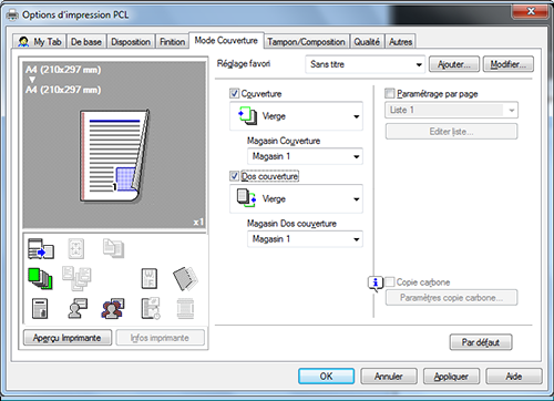 Dans l'onglet [Mode Couverture], cochez la case [Couverture] ou [Dos couverture].