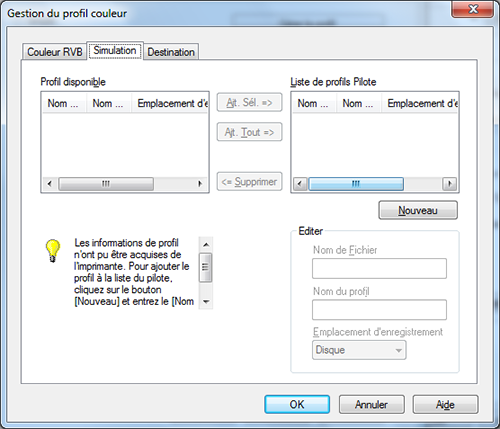 Ajouter les profils ICC dans le pilote d'imprimante