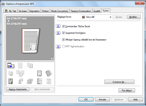 Dans l'onglet [Autres], cochez la case [Afficher l'aperçu détaillé lors de l'impression].
