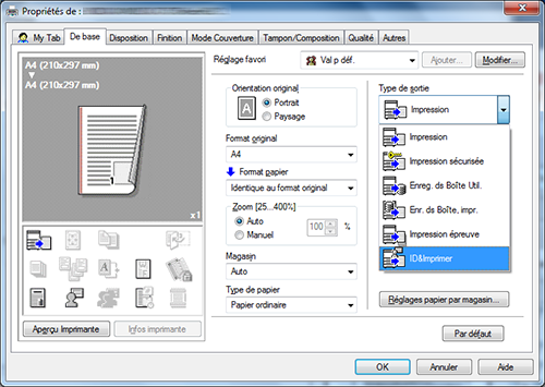Dans [Type de sortie], sélectionnez [ID&Imprimer].
