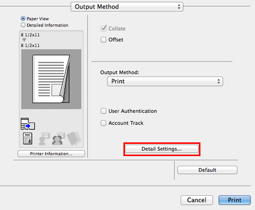 Dans la fenêtre [Output Method], cliquez sur [Detail Settings...]