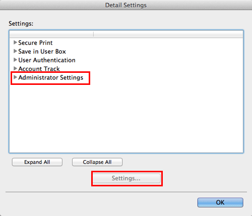 Sélectionnez [Administrator Settings], puis cliquez sur [Settings...]