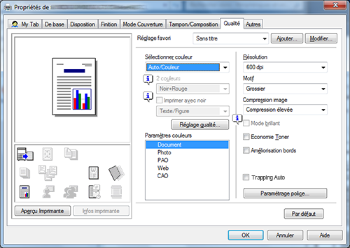 Sous [Résolution] de l'onglet [Qualité], sélectionnez le type de document à imprimer.