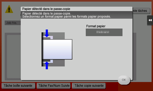 Vérifiez que le format papier défini dans l'introducteur manuel correspond au format de papier effectivement chargé, puis tapez sur [Valider].